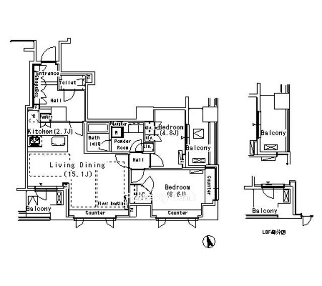 | 間取 | 1LDK ~ 2LDK | 面積 | 53㎡ ~ 78.56㎡ |