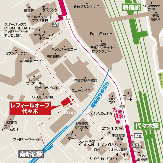 小田急小田原線『南新宿駅』徒歩2分 「レフィールオーブ代々木」の賃貸マンション情報です。