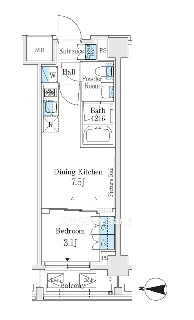 | 間取 | 1DK | 面積 | 27.3㎡ ~ 27.41㎡ |
