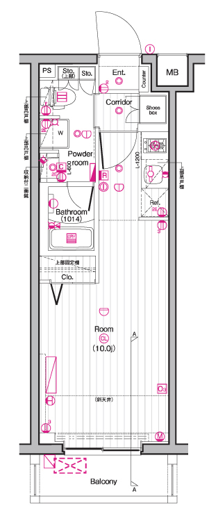 | 間取 | 1R ~ 2K | 面積 | 25.5㎡ ~ 25.98㎡ |