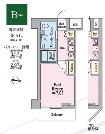 | 間取 | 1K | 面積 | 25.51㎡ ~ 25.62㎡ |