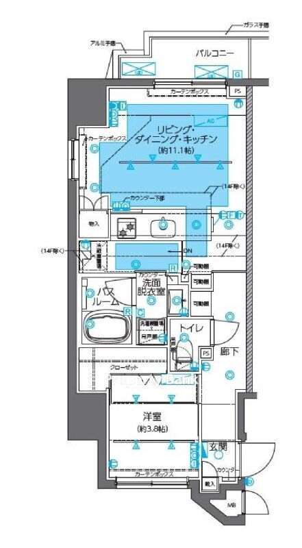 | 建物階数 | 地上14階 | 部屋階数 | 11階 |