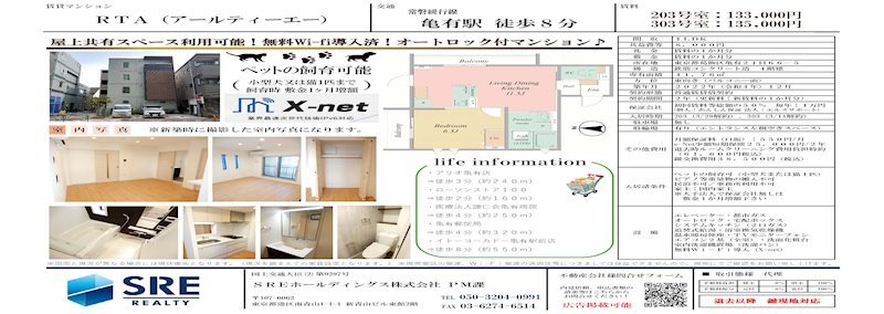 常磐線『亀有駅』徒歩8分 「RTA」の物件ページです。