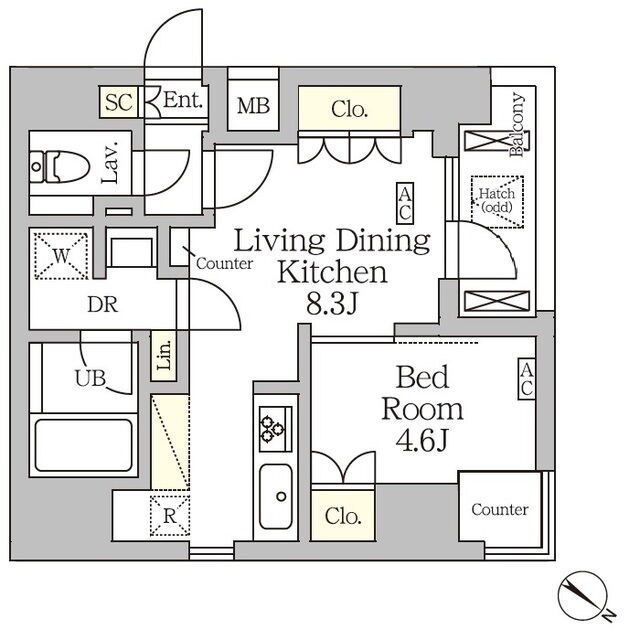 敷金1ヶ月、 南西向き、 広さ33.33㎡のお部屋です。 <ワンルーム賃貸> 更新日:2026-04-07 |