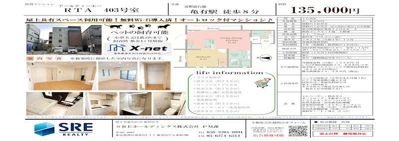 常磐線『亀有駅』徒歩8分 「RTA」の物件ページです。