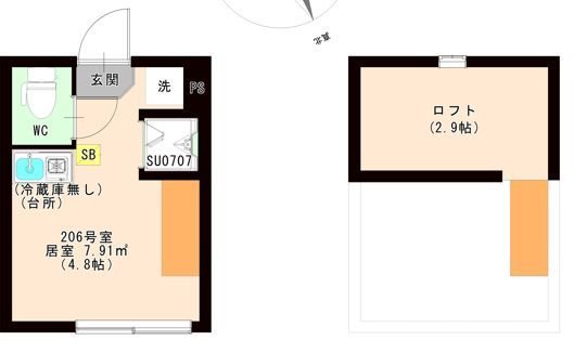 | 部屋設備 | 二人入居可、インターネット無料、バス・トイレ別、シャワー、システムキッチン、ロフト、室内洗濯機置場、フローリング、TVインターホン、温水洗浄暖房便座、クローゼット、ガスコンロ設置可 | ||